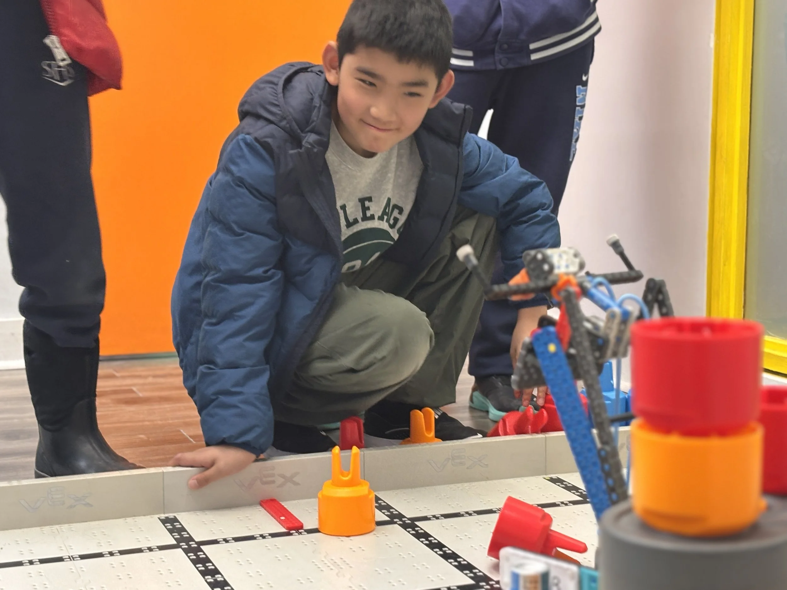 Program Overview: Our VEX IQ program introduces students to the fundamentals of robotics through a hands-on project based approach that emphasizes program solving and the engineering process through thoughtful design iteration. Students begin by exploring core mechanical concepts such as chassis design, drive train basics, and structural integrity, building up the skills they need to build a fully functioning robot using the VEX IQ ecosystem. Beyond physical builds and mechanical skills, our students will develop their programming skills to control their robots autonomously capable of independently completing tasks. Beyond technical skills, our program fosters critical thinking, collaboration, and clear communication. Students maintain engineering notebooks to document their ideas, iterations, and improvements, helping them to develop a structured design process as they learn and progress. Finally, as they advance, students will tackle increasingly open-ended and complex challenges that mirror real-world engineering problems.